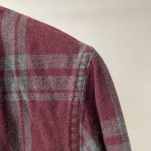 Roots Grey And Burgundy Plaid Flannel Long Sleeve Button Up Shirt, Size S