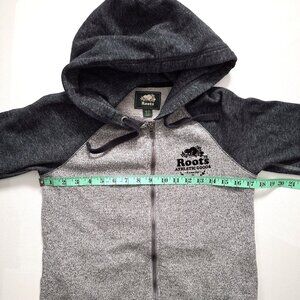 Roots grey full zip up hoodie Sleeves and hood are a dark grey, front and back are light grey Side pockets Size XS If you have any questions, please ask