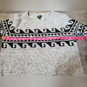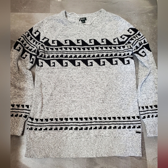 Roots Heathered Gray and Black Aztec Patterned Long Sleeve Sweater. M.