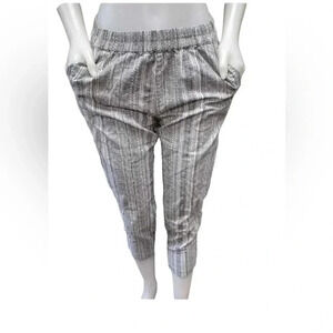 From the Hemp Collection these ankle pants are black and white and have two flat pockets.