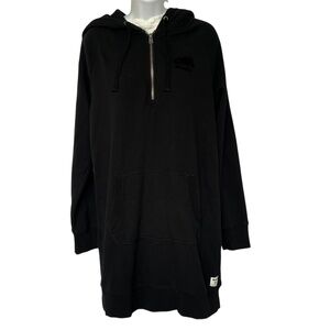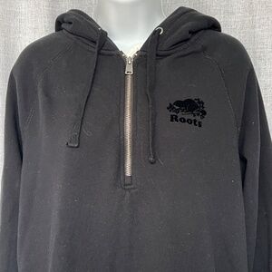 Roots Hoodie 33" Long 1/4 Zip Black Size M Kangaroo Pocket