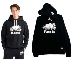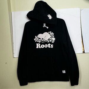 Roots Kanga Hoodie Sweatshirt Top Logo Pocket Fleece Cotton Unisex Logo Preppy S