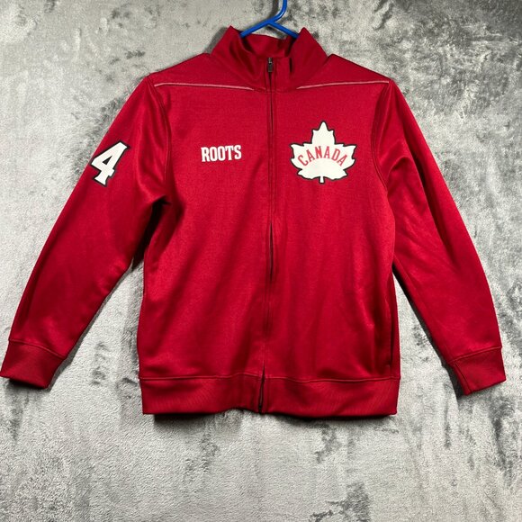 Roots Kids Sweater Youth X-Large Red Full Zip Maple Leaf Canada Pockets Jacket
