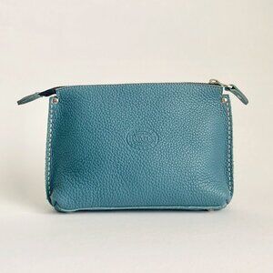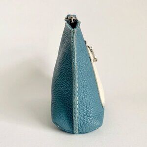 Roots Leather Zipper Clutch Purse Travel Mini Bag Blue White Minimalist Boho