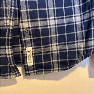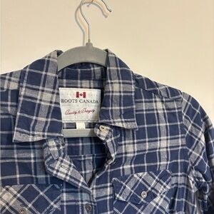 Classic plaid shirt by Roots. Features a button-up front and chest pockets.