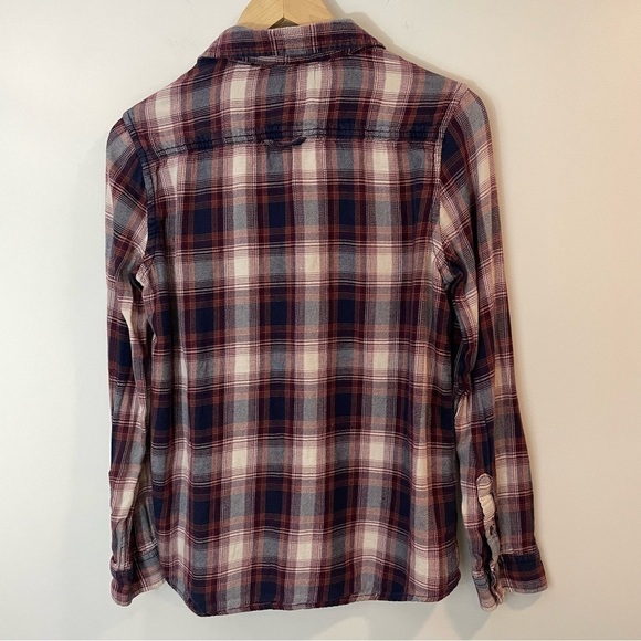 Roots Plaid Flannel Button Up Shirt Women’s S Red Blue Cotton Top Casual Comfy