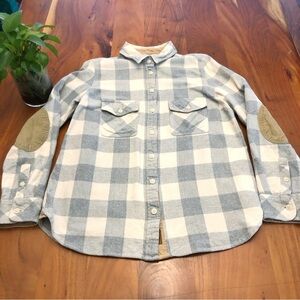 Roots Plaid Thick Casual Pastels Blue Long Sleeves Button Down Shirt Sweater Sweatshirt.