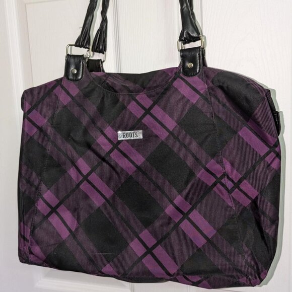 Roots Purple & Black Plaid Tote Bag/Purse - Discounted Shipping!