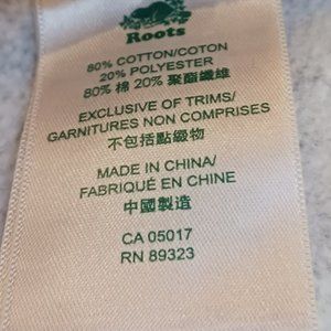 Roots gray crewneck sweatshirt, size S. Features ribbed cuffs, waist, and side panels in a contrasting slightly darker gray. Please refer to the attached picture for details. Includes the iconic Roots leather patch on the front waist area. Very good condition with minimal signs of wear. No rips, stains, or tears .Perfect addition to your casual wardrobe. Salt and pepper gray (see last pic). Unisex