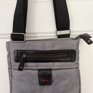 Front of bag has 2 pockets, one with zipper and one with strap closure