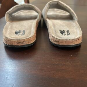 Roots Suede Quilted Slide Sandals Taupe Women Size 9