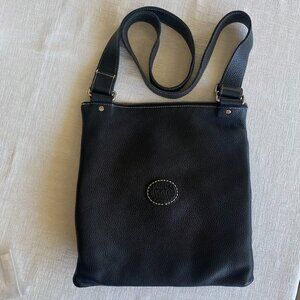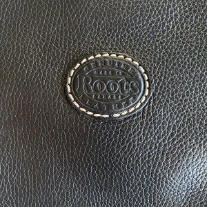Unisex Roots Venetian Village pebble leather messenger Black Crossbody bag. multiple/multi-function pockets & compartments. adjustable leather crossbody strap. Full length Strap drop: 22.5". See photo of small tear in lining at top zipper entrance, other than that bag is very clean inside & out and in great preowned condition with super minimal signs of wear.