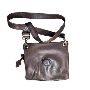 This Roots crossbody bag in a rich brown hue combines style and functionality with its adjustable strap and sleek silver hardware. Crafted for everyday use, it offers a practical design that complements any casual outfit. Good used condition, see pics inside of pocket there is a tear where the hardware has pulled a bit, not noticeable on the outside