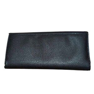 Roots Wallet Black Leather Tri Fold Clutch Pebbled Snap Wallet zip Coin Pouch