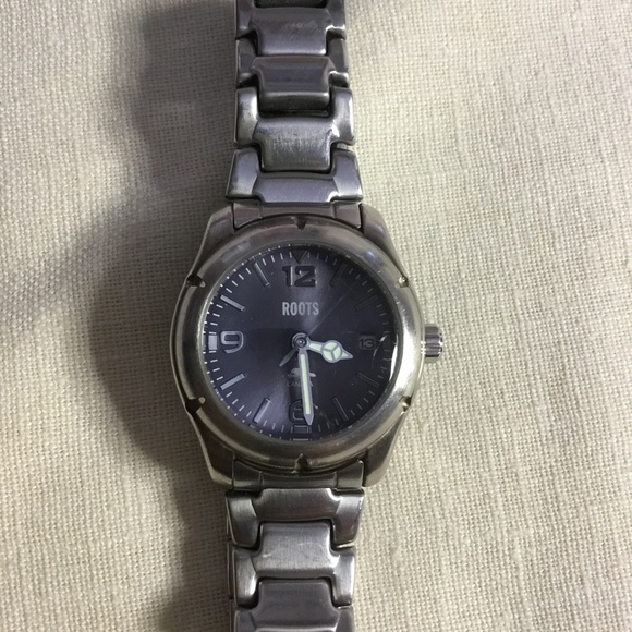 Unique Roots blue face watch. Illuminated hands, etc in the dark. New battery. No scratches on crystal. Extra links incl.