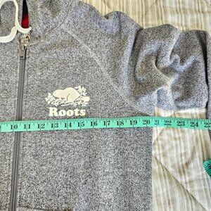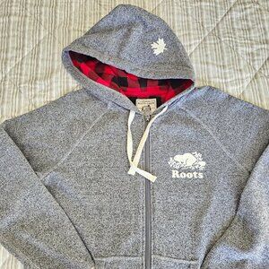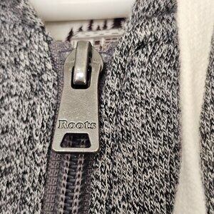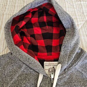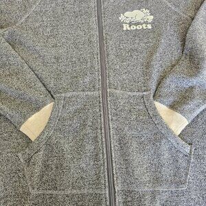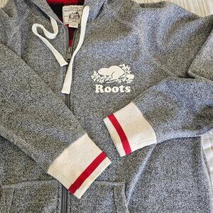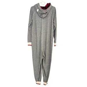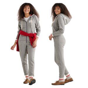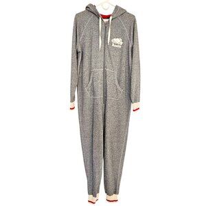 Roots Women’s Cabin Onesie Grey Oat Pepper Size M Zip Front Hooded Jumpsuit Cozy