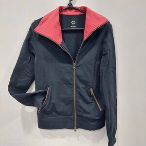 Roots Yoga Zip SUPPLEX Jacket Black With Orange Collar, Zipped Pockets, S