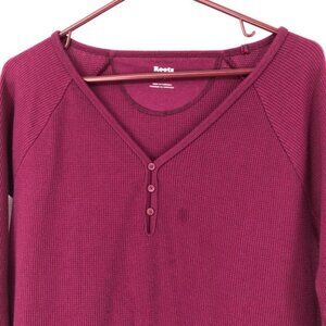 Roots hot pink waffle knit Henley long sleeve t-shirt small