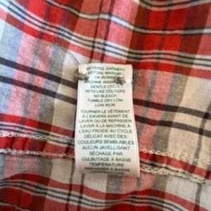 In good pre-loved condition ladies Roots plaid long sleeve button down top.
