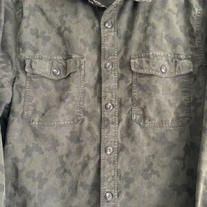 Roots men's green camo print button down long sleeve cotton blend shirt size L