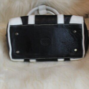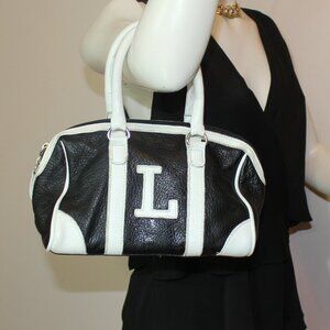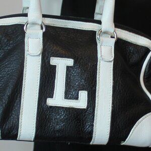 Roots mini leather bag black white with L letter double zip Made in Canada