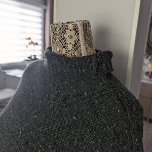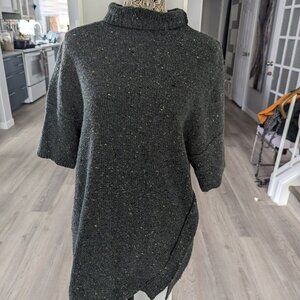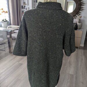 Material: merino wool, nylon, and alpaca. The neck can be rolled or left high. A stand alone piece that can also be worn over a long sleeved tee or shirt