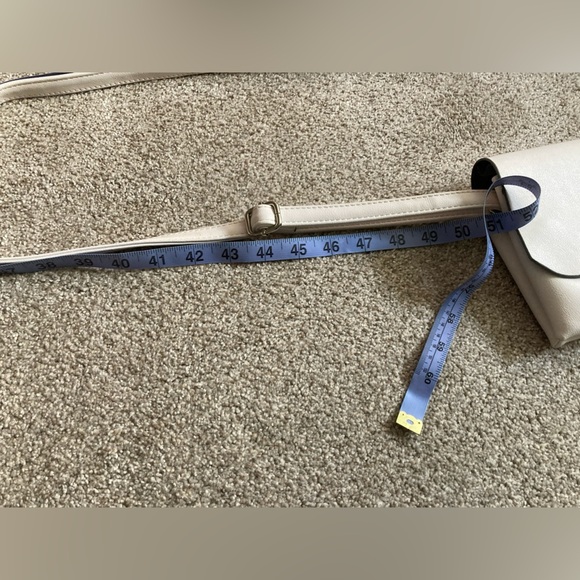This small white shoulder bag has loads of life left. Noticed a small separation of the lining and the is could be glued or cut off, but lowered price for you to decide all that (didn’t want to mess with it).