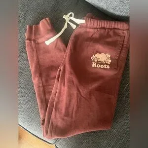 Roots track pants colour burgundy good condition size medium