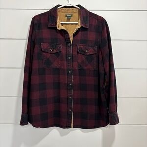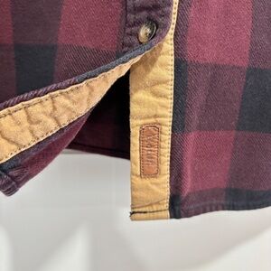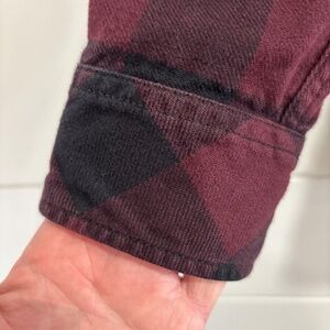 Roots women's park plaid flannel button down shirt burgundy & black size L