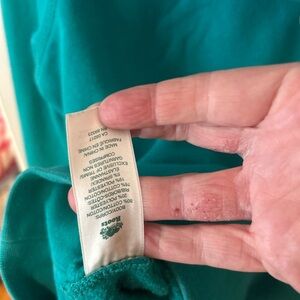Thick and cozy hoodie Excellent condition without stains, pilling etc. Hoodie string missing. Easy fix if even desired. Size large is small and fits more like a medium. Listing accordingly. Good to size 8 small 10
