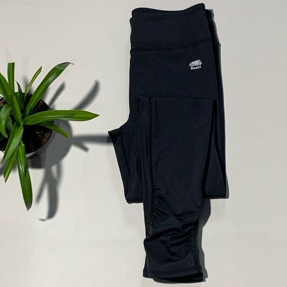Roots black leggings in Euc no pilling or holes the size is missing but they are a large in girls or xs-sm woman they have a band around the waist and