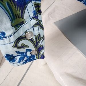 Roper Floral Pearl Snap Western Shirt Powder Blue Feminine Cowgirl Size Large