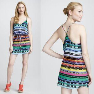 Rory Beca Silk Waiverly Print Drop Waist Mini Dress in Women's Size XS. V-neck line. Spaghetti straps with racerback style. 100% silk. Retails for $167 USD (approximately $232 CAD). From Neiman Marcus. Very good pre-loved condition. Only flaw is that the drawstring is missing. See photos.