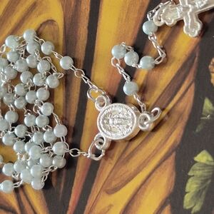 This delicate pastel baby blue rosary is a charming and comforting piece. Crafted with miniature beads, its gentle color evokes a sense of peace and tranquility, perfect for contemplation and prayer. Measuring a petite 11 inches in length, it's easy to carry and hold, making it ideal for personal devotion and a beautiful reminder of faith. The miniature beads give it an intricate and refined look, enhancing its overall appeal and making it a cherished keepsake.