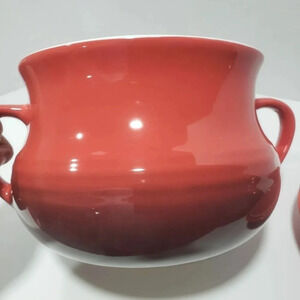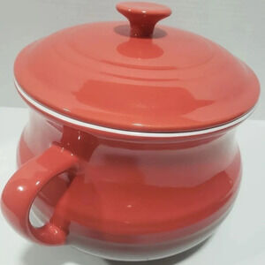Roscher & CIE Orange/Red Ceramic Bean Pot with Lid.