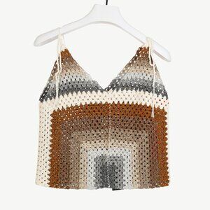 Rose Carmine Neutral-Tone Lurex Crochet Tank