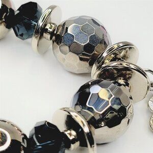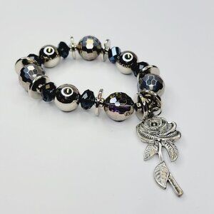 Rose Charm with Black Bead Stretch Bracelet