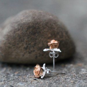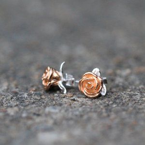 Botanic Jewelry/Rose Flower Jewelry/Rose Jewelry/Floral Earrings/Beautiful Earrrings Studs/Beautiful Earrings for her/Rose Gold Earrings