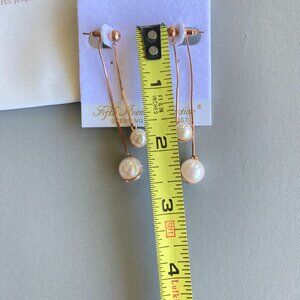 New With Tag Fifth Avenue Collection Striking Dangle Earrings Rhodium plated Rose Gold Tone, Half Pearl on one side with Swarovski Crystals on other side. 2 in one earrings, can wear single strand with your own backing or wear together. 2 3/4" long. Sterling silver posts, nickel, lead & cadmium free, hypoallergenic.