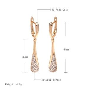 Shining Drop Type Tassel Dangle Earrings Twinkle Natural Zircon 585 Rose Gold Plated