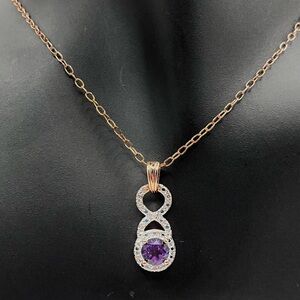 Rose Gold Tone Genuine African Amethyst Pendant Necklace