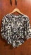 Chic blouse with abstract black and white design. Features a stylish tie front and relaxed fit.