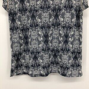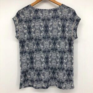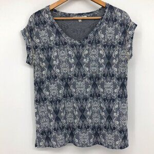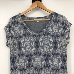 Rose & Olive Blue and White V-neck Abtract print T-Shirt Lattice Detailing LG