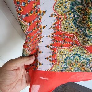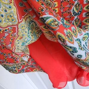 Beautiful vibrant flowy tank. Nice orange voile under lining.
