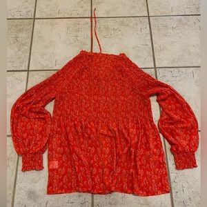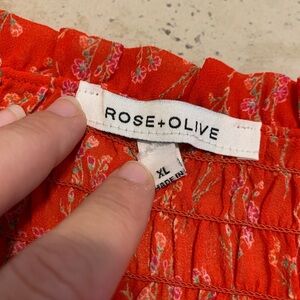 Rose + Olive Red Floral Smocked Blouse - Size XL