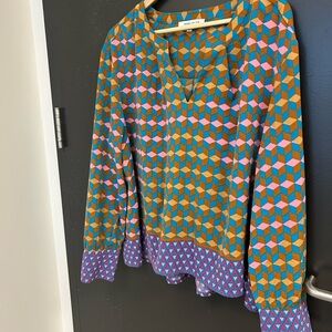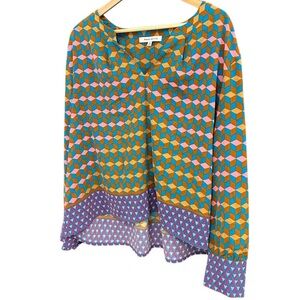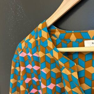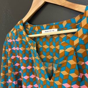 Rose + Olive Geodesic pattern flowing peasant top in fantastic near new as possible condition! Super bright and fun for spring/summer!
