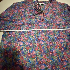 Rose + Olive boho pastel flowers top with ballon sleeves Sz M