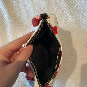 Super cute white with red roses toiletry bag.