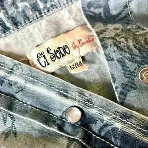 Classic denim shirt style with fitted waist. Indicated size M but on a smaller end, more S/M