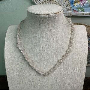 This stunning pale pink quartz necklace adds a touch of elegance to any outfit. Perfect for any occasion.